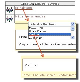 Vous pouvez frapper un citoyen de votre empire d'un redressement fiscal. Il devra payer à l'empire 10% de ses avoirs totaux : argent, matériel, bâtiments dont il est propriétaire (les actions et les bâtiments dont il est gestionnaire ne sont pas taxés).